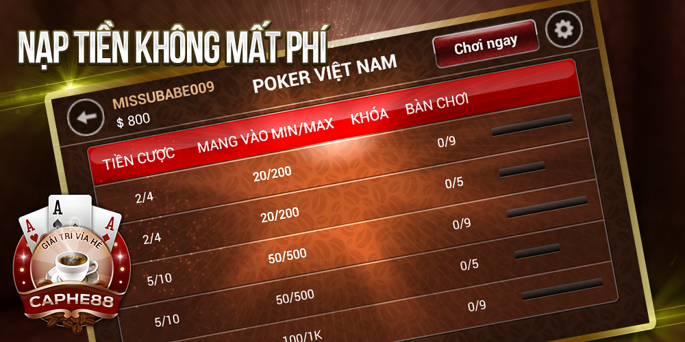 - Có các game như: Tiến lên, Liêng, Tá lả, Sổ xố.